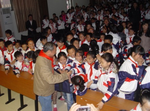 報告結束,當鄭老走下講臺時,立刻就被孩子們圍了起來。大家爭先恐后與他握手,有的同學還情不自禁地喊起“鄭爺爺好!”。會場內氛圍融洽,令人感動。整場報告會取得了超出預期的良好效果。