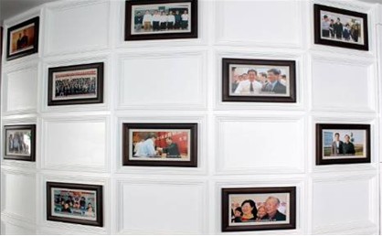 據了解,集團總部辦公室的企業文化墻呈圓弧型,共20余平米,由10幅照片和文字交錯組成,主要以各級領導視察集團、關心集團發展為主題,集中展示了在集團的發展歷程中,從中央到省市各級政府、領導對集團的高度重視與大力支持。