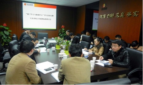 根據(jù)會議安排,集團(tuán)品牌文化部借助此次集團(tuán)各部門、單位文宣工作人員齊聚一堂的機(jī)會,針對集團(tuán)文宣系統(tǒng)相關(guān)工作流程和工作標(biāo)準(zhǔn)與參會人員進(jìn)行探討和學(xué)習(xí)。此次會上解讀的文宣系統(tǒng)工作流程及標(biāo)準(zhǔn)主要是涉及各單位的相關(guān)工作流程,如信息采集與編發(fā)流程,包括集團(tuán)報編發(fā)流程、要情通報編發(fā)流程、網(wǎng)站信息上傳流程;企業(yè)文化建設(shè)工作管理流程,包括企業(yè)文化管理總流程、準(zhǔn)備階段流程、診斷階段流程、規(guī)劃階段流程、實(shí)施階段流程以及品牌建設(shè)管理流程、文宣工作人員考核流程,文宣工作年終評優(yōu)評先流程等文宣系統(tǒng)工作的六個大項(xiàng)、二十余各小項(xiàng)流程和相關(guān)工作標(biāo)準(zhǔn),通過制定一系列的文宣系統(tǒng)工作流程及標(biāo)準(zhǔn),進(jìn)一步規(guī)范集團(tuán)文宣系統(tǒng)相關(guān)工作,引導(dǎo)各單位文宣工作人員熟悉掌握并嚴(yán)格執(zhí)行相關(guān)工作流程和標(biāo)準(zhǔn),從而提高工作效率。